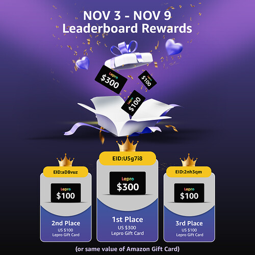 NOV 3 - NOV 9 Annuncio dei premi settimanali della classifica